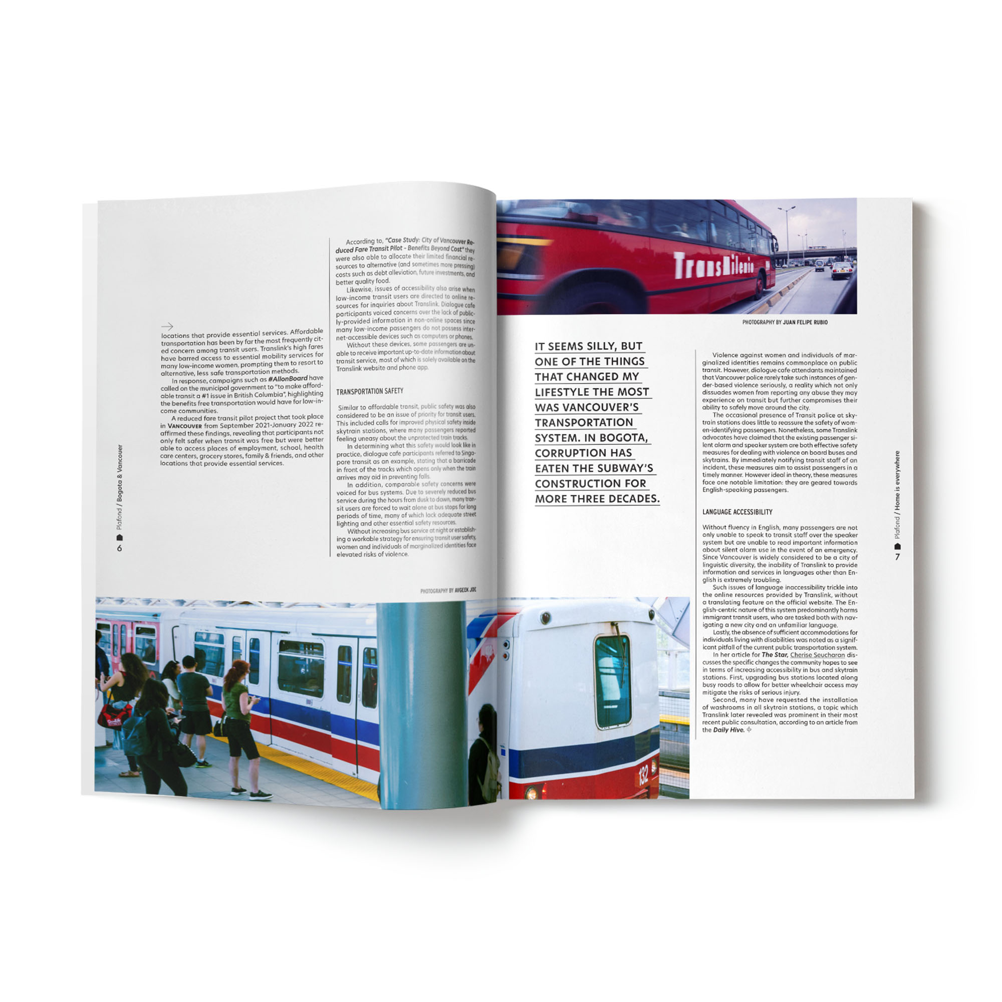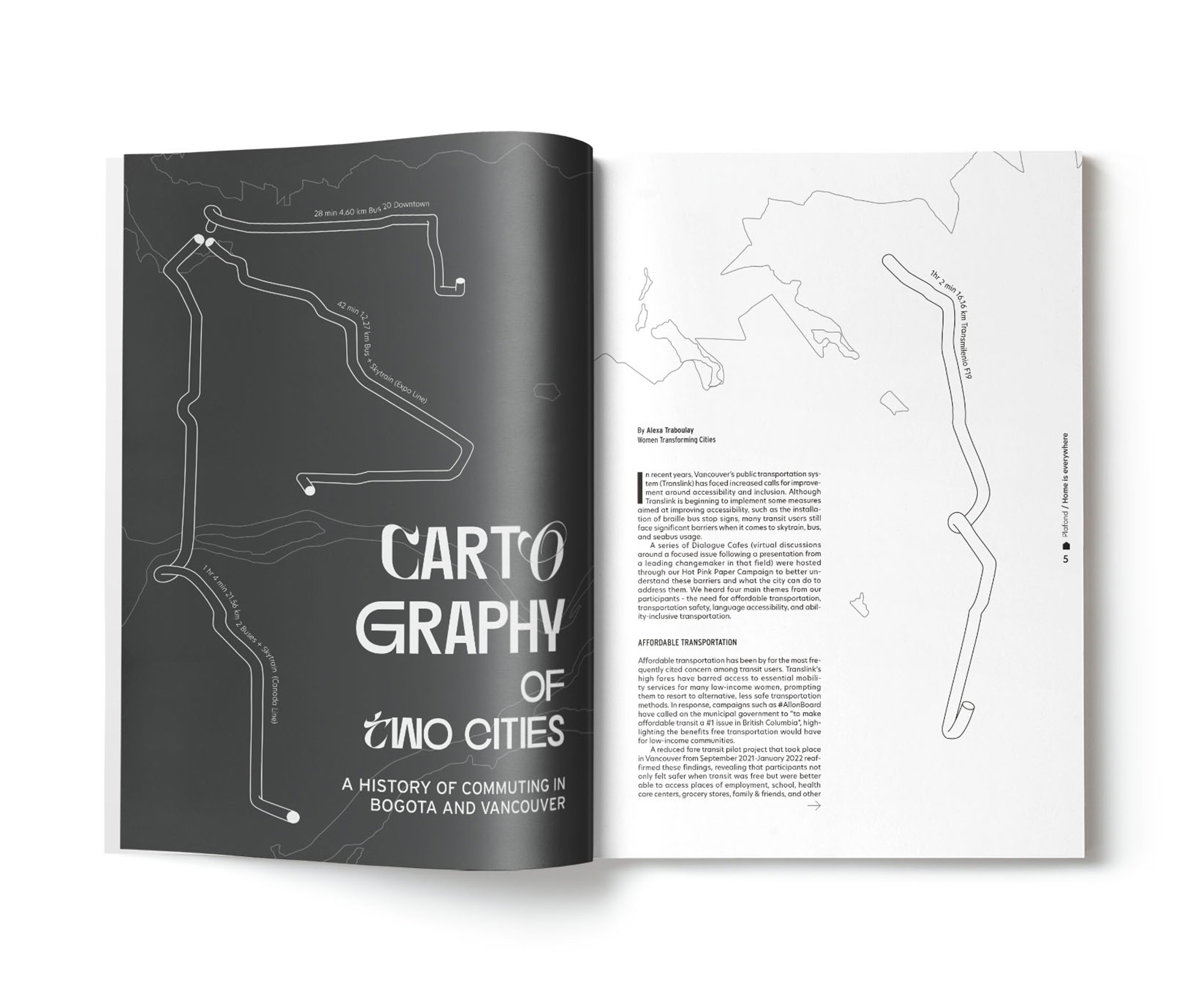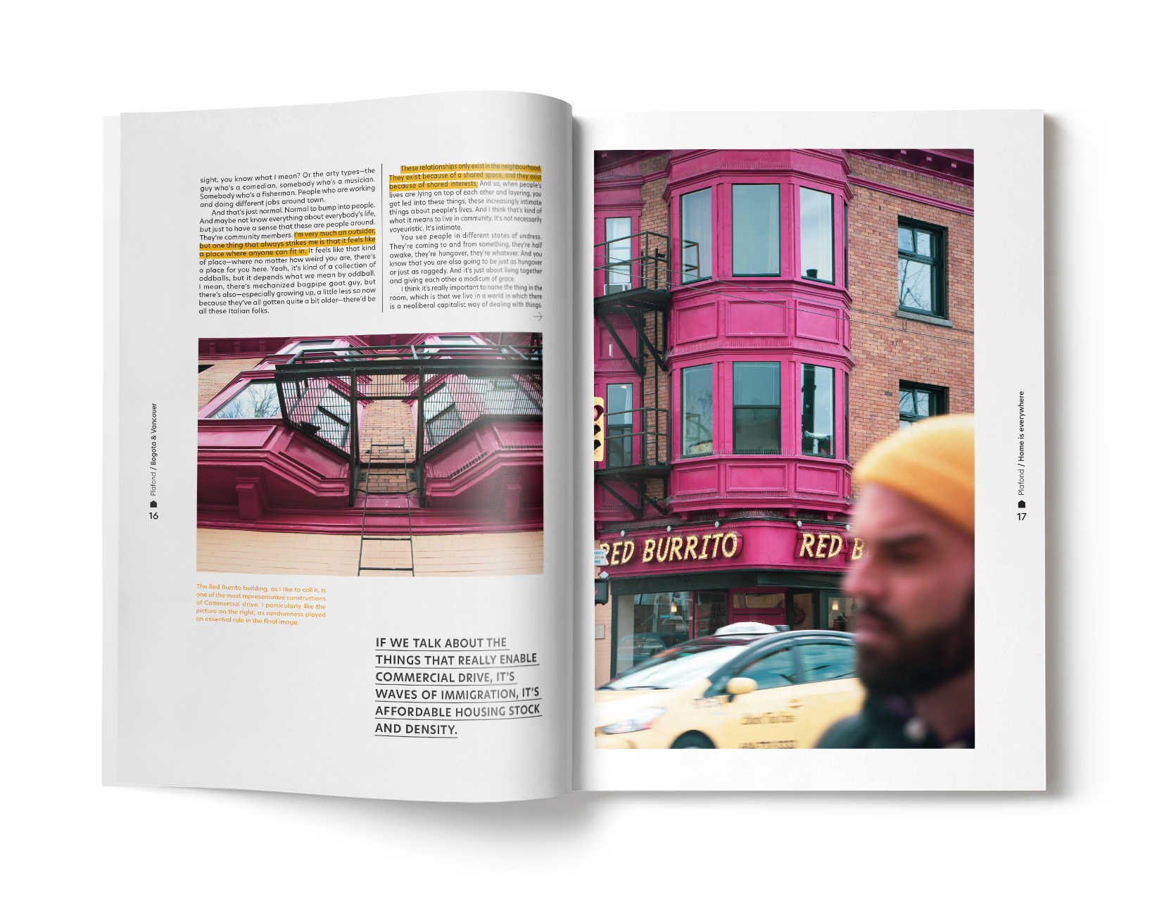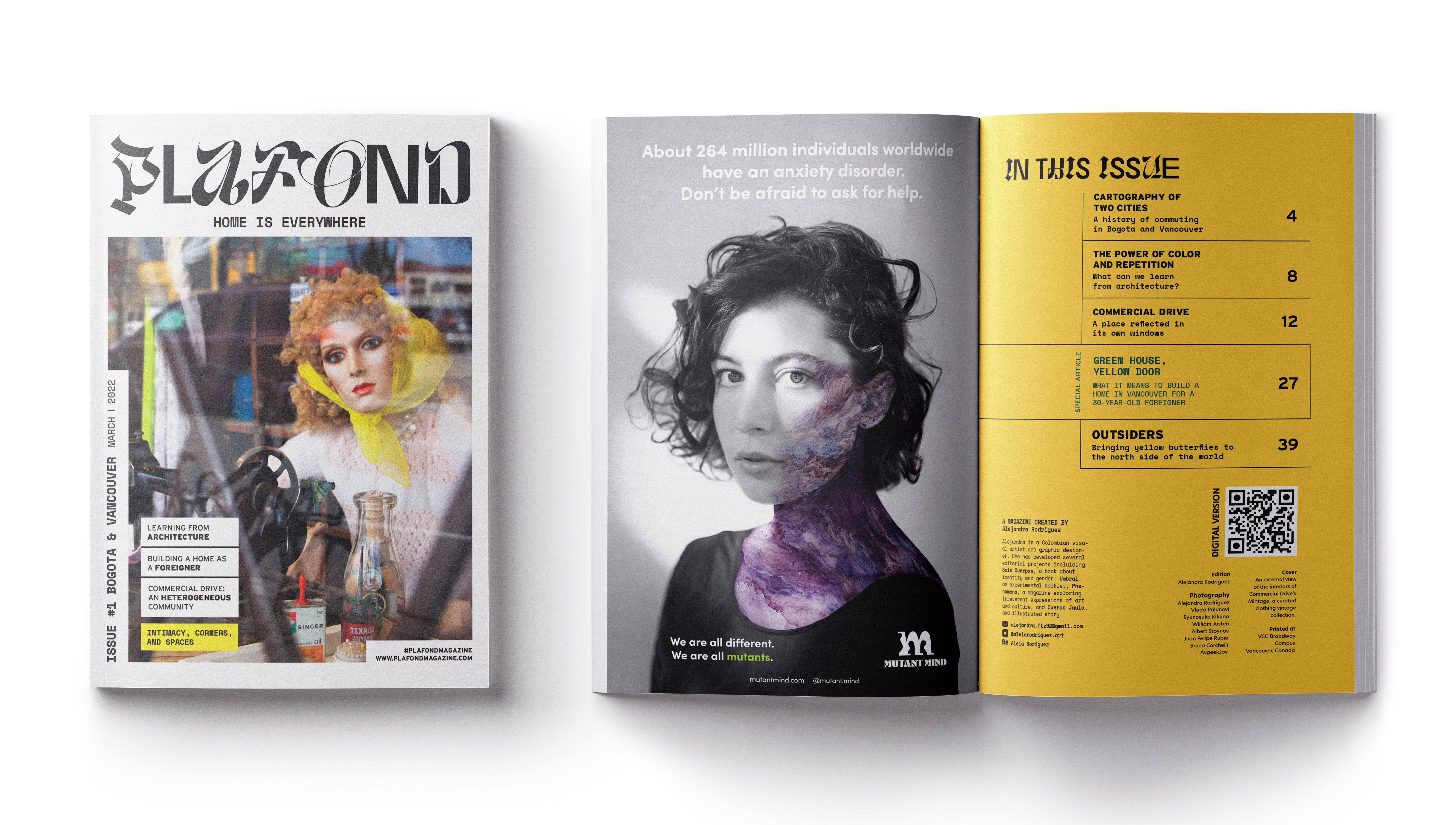 Plafond is a magazine dedicated to exploring these stories worldwide, drawing parallels between cities of origin and cities of destination. The magazine represents diversity, using different typographies in its titles, while maintaining visual coherence.
