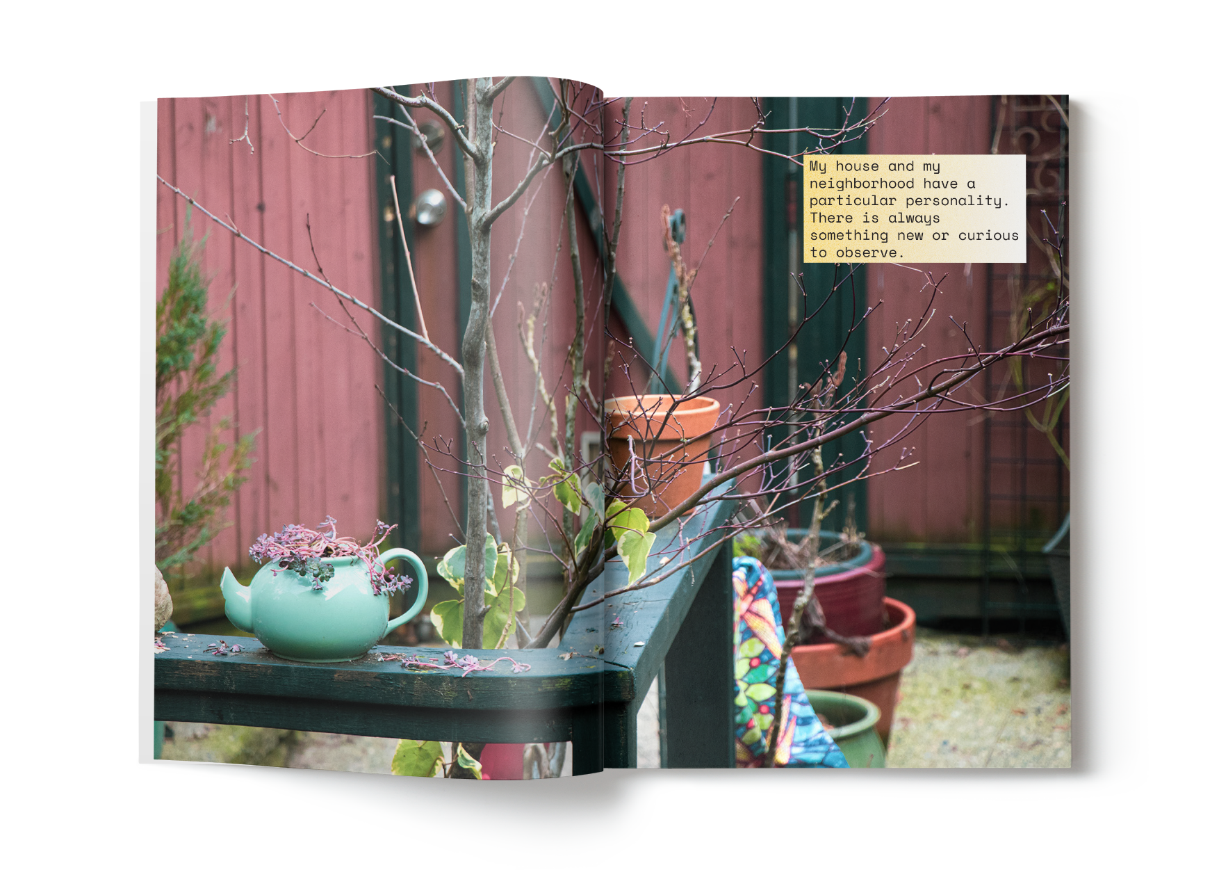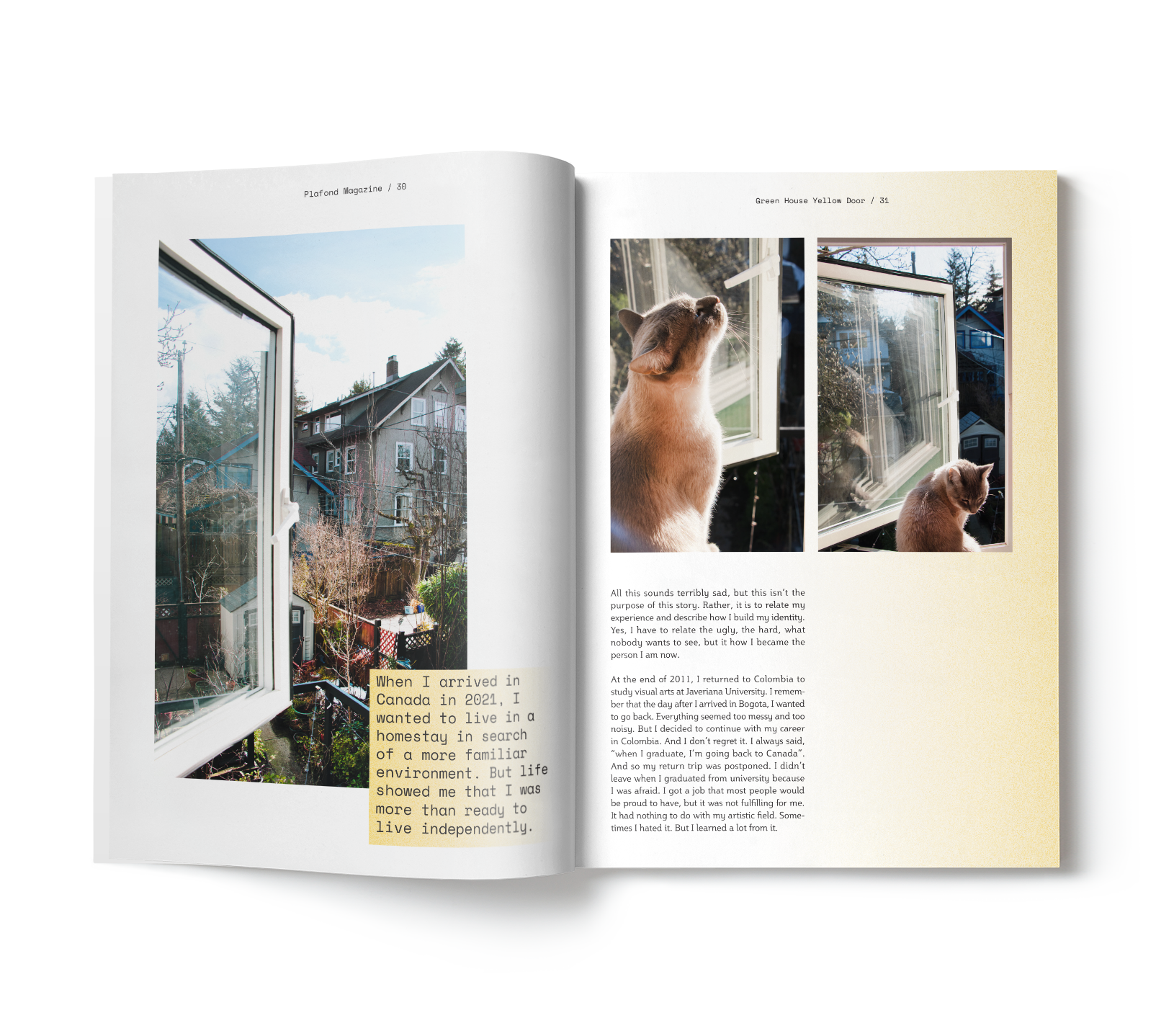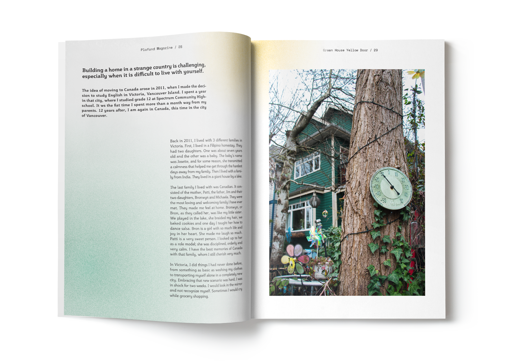 This magazine's insert, Green House Yellow Door, tells the story of a particular person who migrated to another country in a more intimate and personal way.