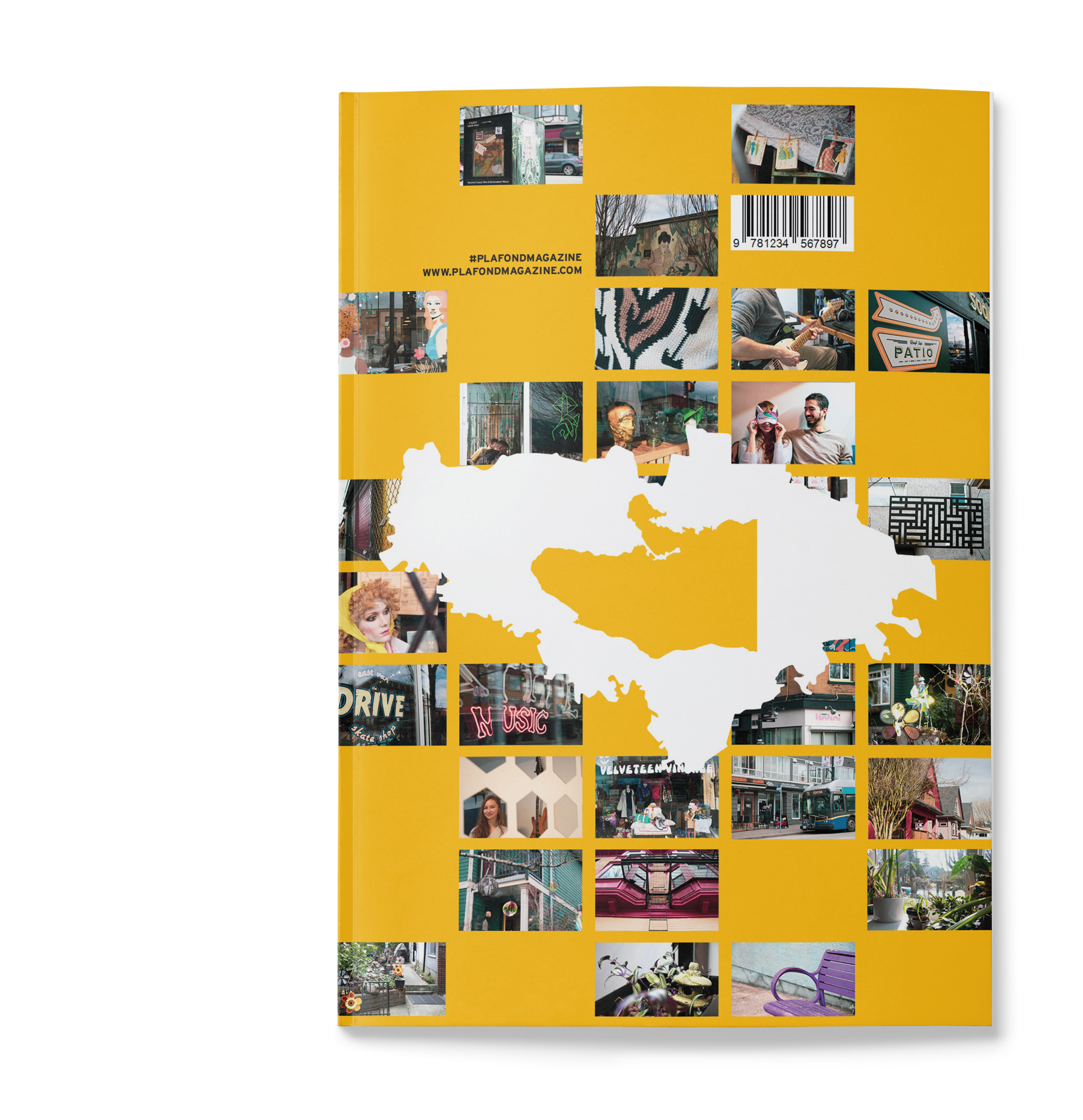 The back of Plafond is a compilation of some of the pictures displayed throughout the magazine, with two overlapping maps in the middle. In this case, the maps are the two cities compared in this edition: Bogota and Vancouver.