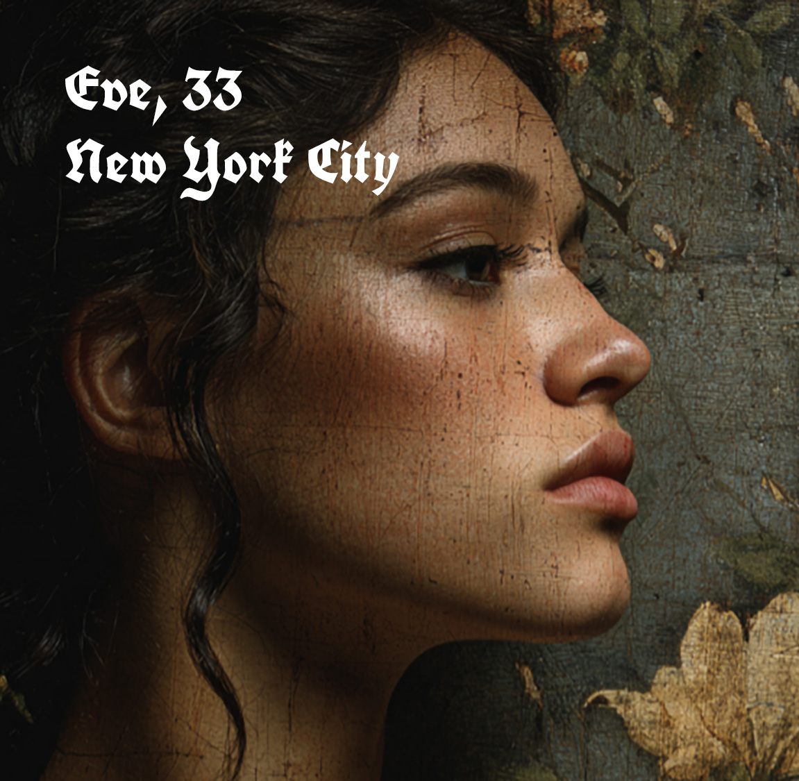 Eve drinks a healthy smoothie before work and an espresso martini at night. She tells her friends she’s sworn off men and plans on dying alone, but keeps and entertains a secret roster of men. She keeps a strict Instagram aesthetic for her profile, but enjoys engaging with unserious content like stand up comedy and anti-influencers.